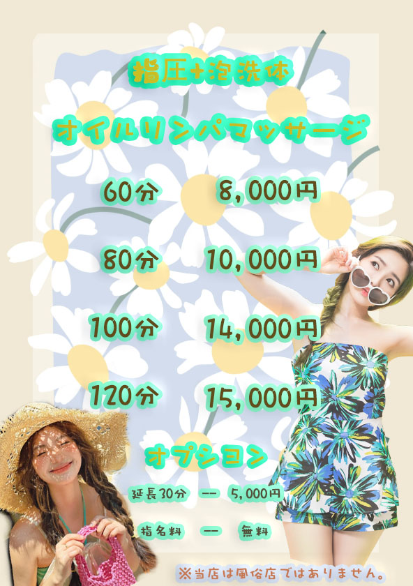 | 待遇 | 歩合制(保障給あり)、全額日払い可シフト自己申告制。その他、何かご要望がございましたらご相談に応じさせていただきます。 |